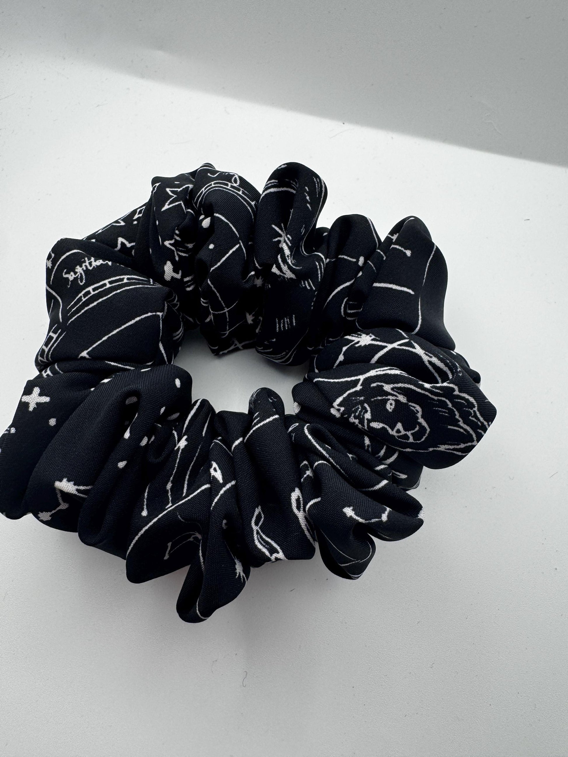 Black and white constellation zodiac medium size satin scrunchie. Excellent for avoiding hair breakage and split ends. Great for hair health.