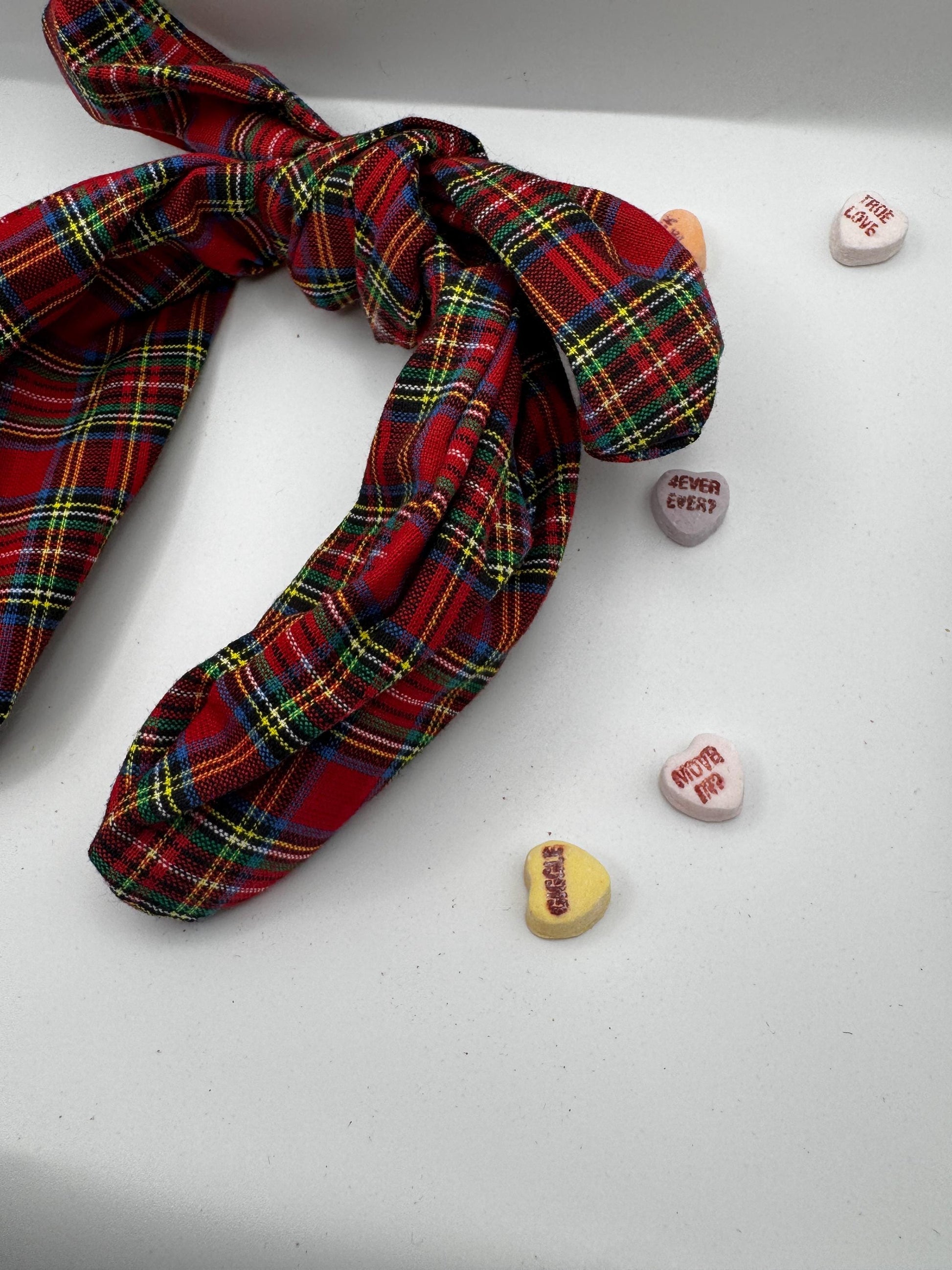 Red and Green Plaid Punk Headband | Hard Headband | Bow Headband| Headband for Women and Girls