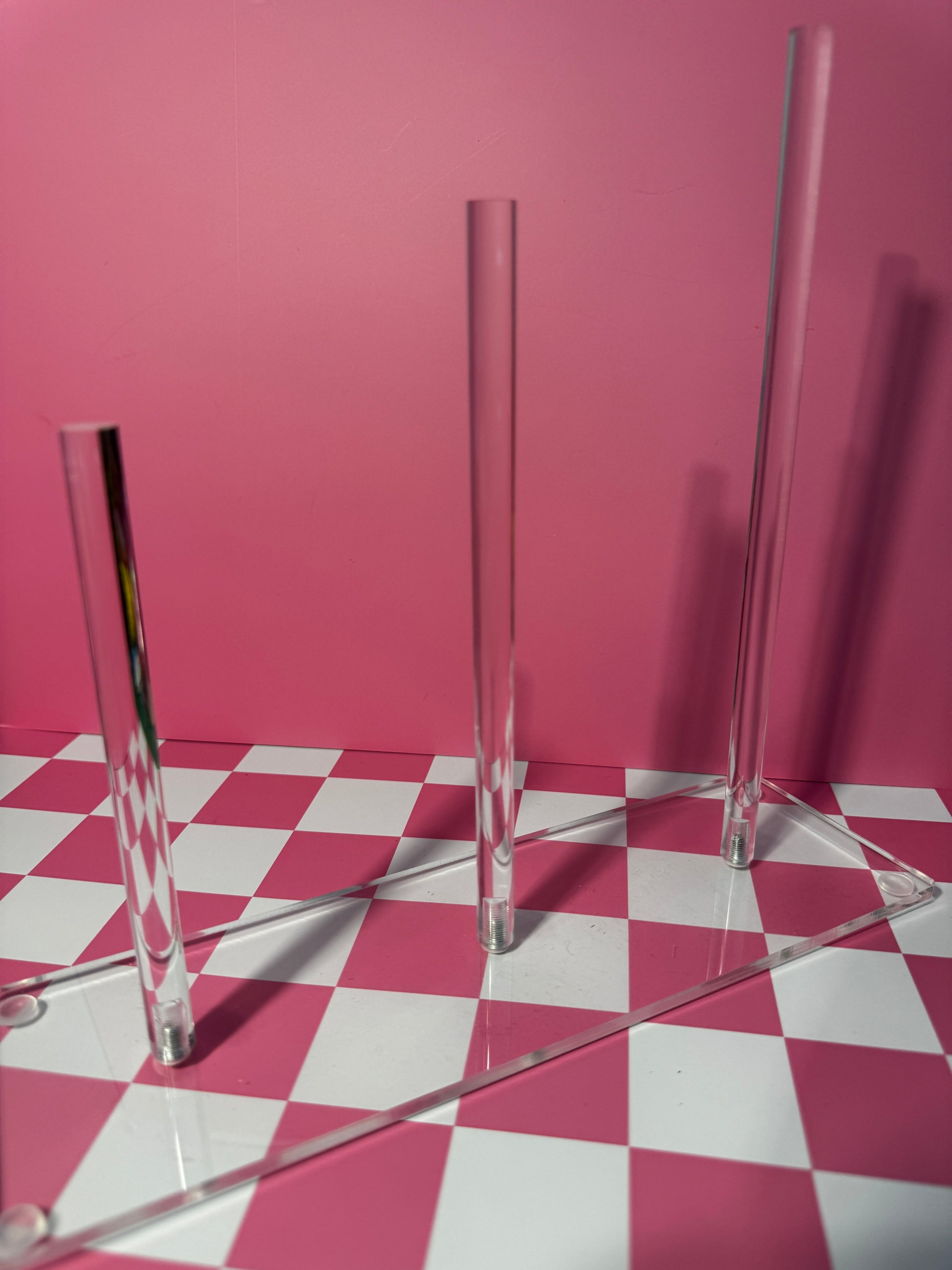 Acrylic 3 stick scrunchie stand. Assembly required.