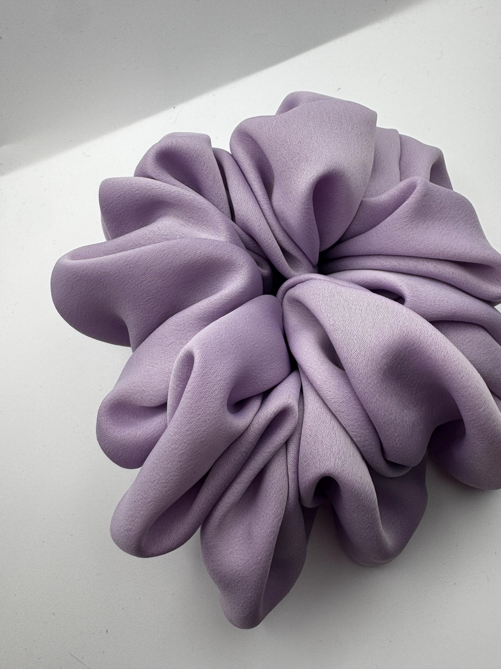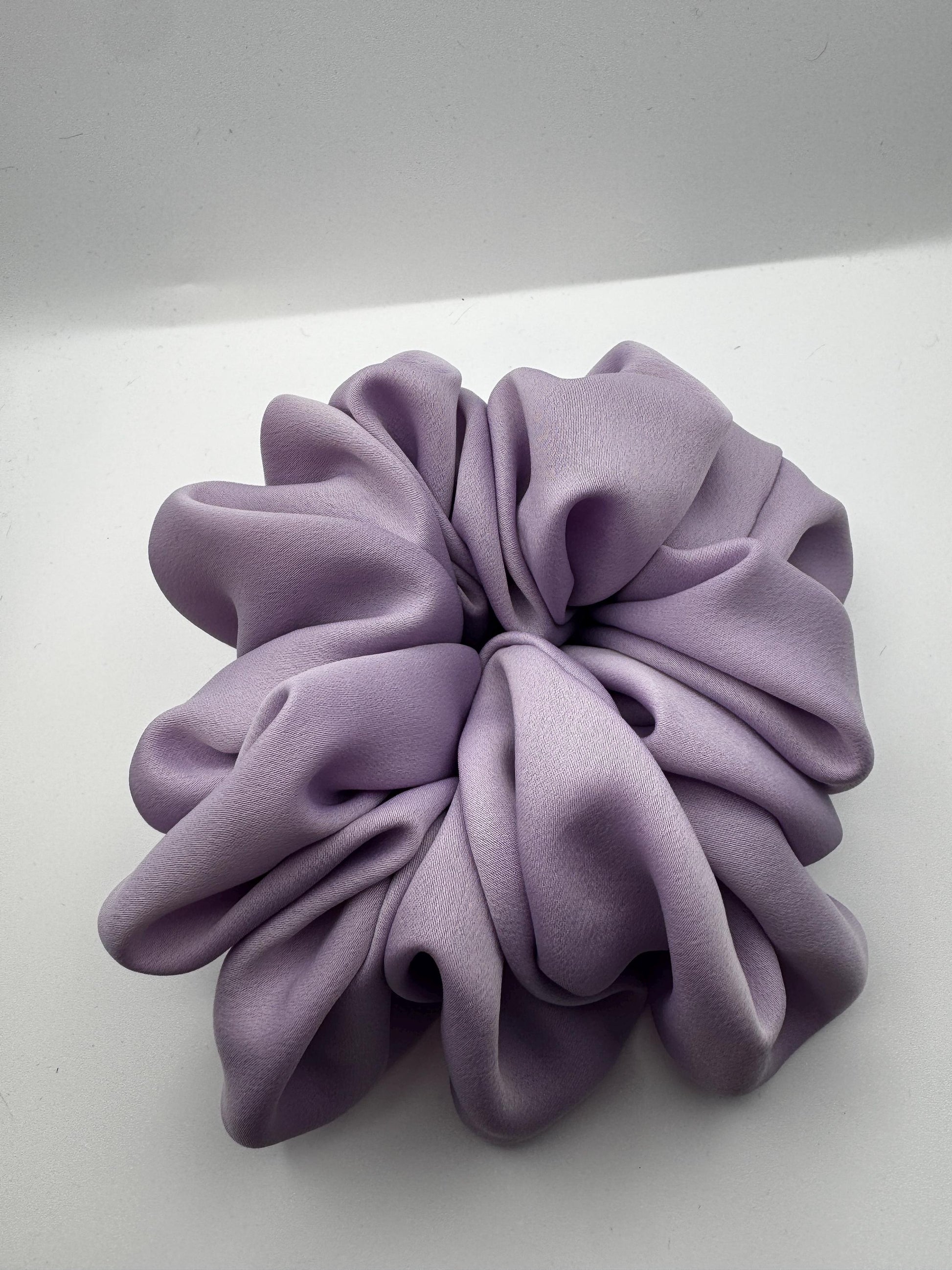 Soft and smooth lavender purple rococo coquette xl jumbo oversized satin scrunchie. Excellent for avoiding hair breakage and split ends. Great for hair health.